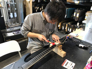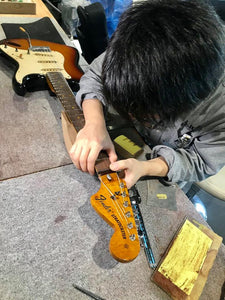 本日はこちらの Fender Musicmaster Bass にも施しました 指板擦り合わせのご紹介です。 リアルビンテージの年代物なためネックの調子が悪く、以前の投稿でもリフレットリペアについてご紹介したのですがリフレットする際に一緒に行う事が多いのが指板の擦り合わせです。 主な目的と...