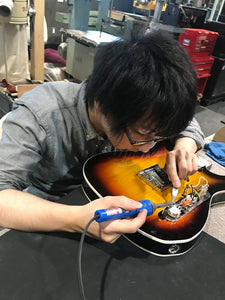 今日は新しくGLIDE EXPERIENCE SERIESに仲間入りするギターにカスタマイズを施していました。折角なので、カスタマイズに使う技術を1つ紹介します。今日紹介するのは「ハンダ付け」。ハンダ付けとは、半田ごてを使って各パーツを繋ぎ合わせる作業です。単調ではありますが、とても重要な作業...